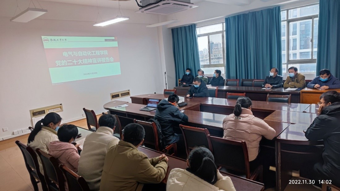 为推进学院学习宣传贯彻党的二十大精神持续走深走实,根据校党委统一部署,11月30日下午,必赢线路检测3003no1在逸夫楼召开学习宣传贯彻党的二十大精神宣讲报告会,院党委书记何岳颀同志作宣讲报告,全院180余名教职工通过线上线下结合的方式参加学习。