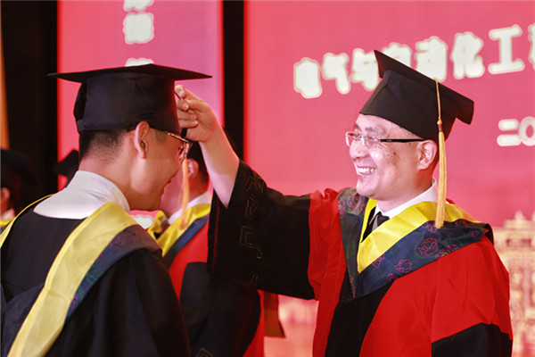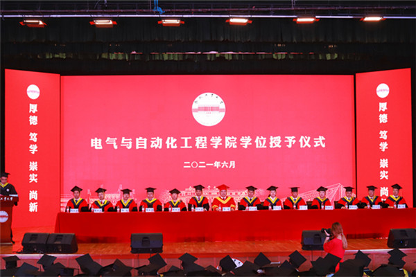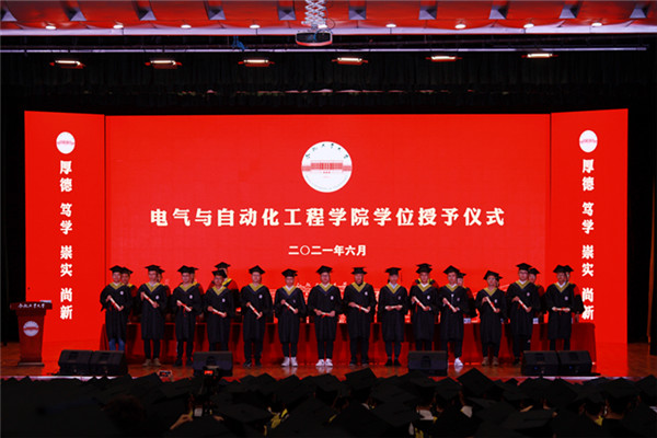 仪式在庄严隆重的国歌声中拉开序幕,院长丁立健宣读了《必赢线路检测3003no12021届毕业生学位授予决定》。与会领导和老师为542名学士学位获得者、216名硕士学位获得者和4名博士学位获得者颁发学位证书,扶正流苏并合影留念。仪式上,教师代表电气学院教授孔慧芳、本科代表安徽省优秀毕业生自动化2017级3班沈涵、研究生代表安徽省优秀毕业生2018级7班金致含在仪式上分别发言,校党委副书记、纪委书记陆林致辞。