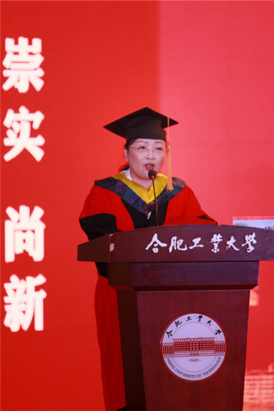 孔慧芳老师向广大毕业生顺利取得学位表示祝贺,从教师的视角与同学们共同回顾了在校园学习生活、教学相长的点点滴滴,用“人生如棋,落子无悔;人生如歌,悲欢自谱;人生如舟,不进则退”三句心里话寄语广大毕业生,希望大家在“厚德、笃学、崇实、尚新”的校训指引下,不懈奋斗,持续进取,以梦为马,不负韶华。
