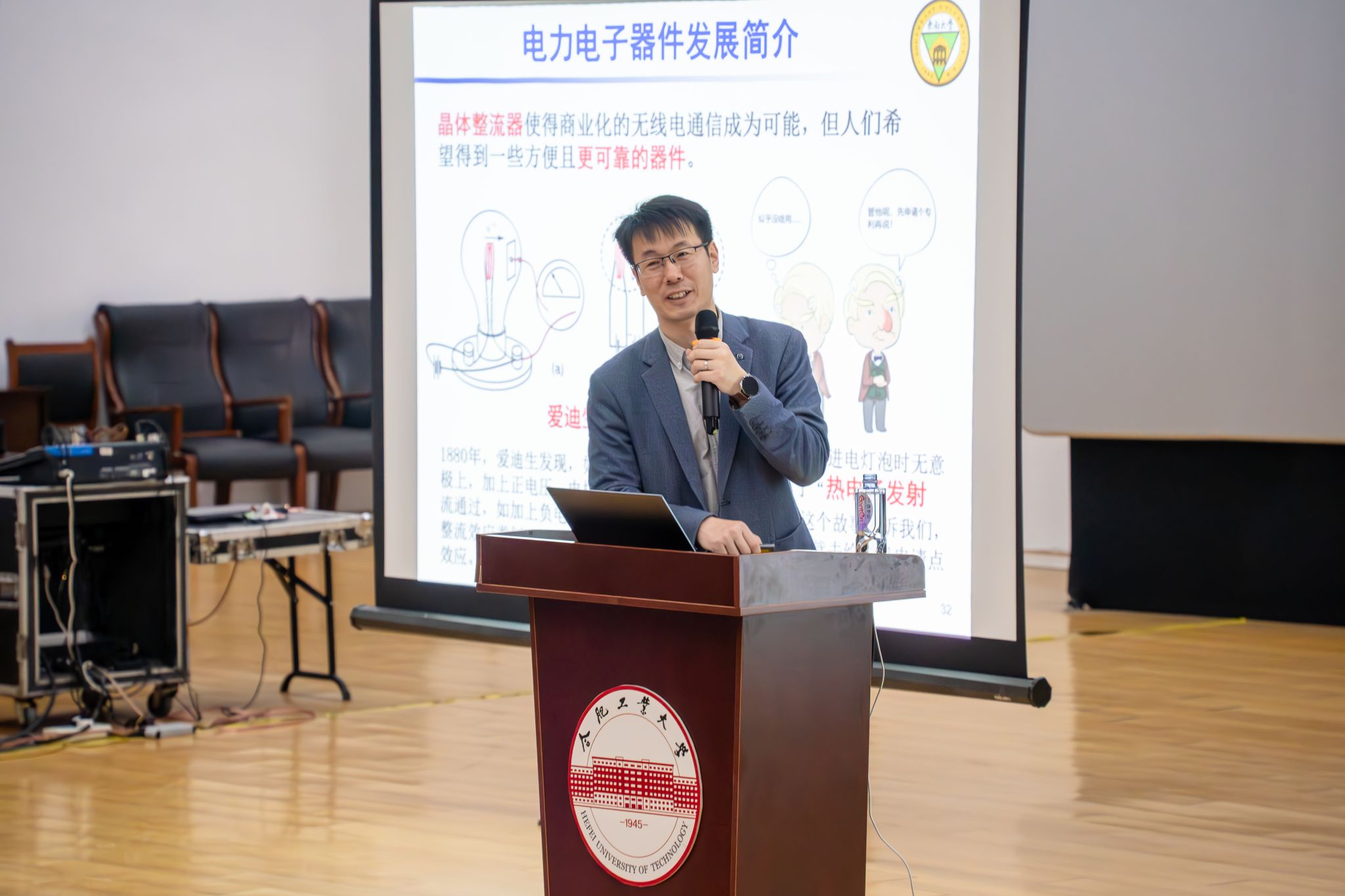 陈武教授以“寻迹电力电子”为主题,从古籍文献中探寻“电”的起源与发现,梳理了电气科学的诞生历程。他深入浅出地介绍了电力电子器件的发展过程以及电力电子技术的含义,并系统阐述了电力电子技术在关键环节和重点领域的发展及应用。