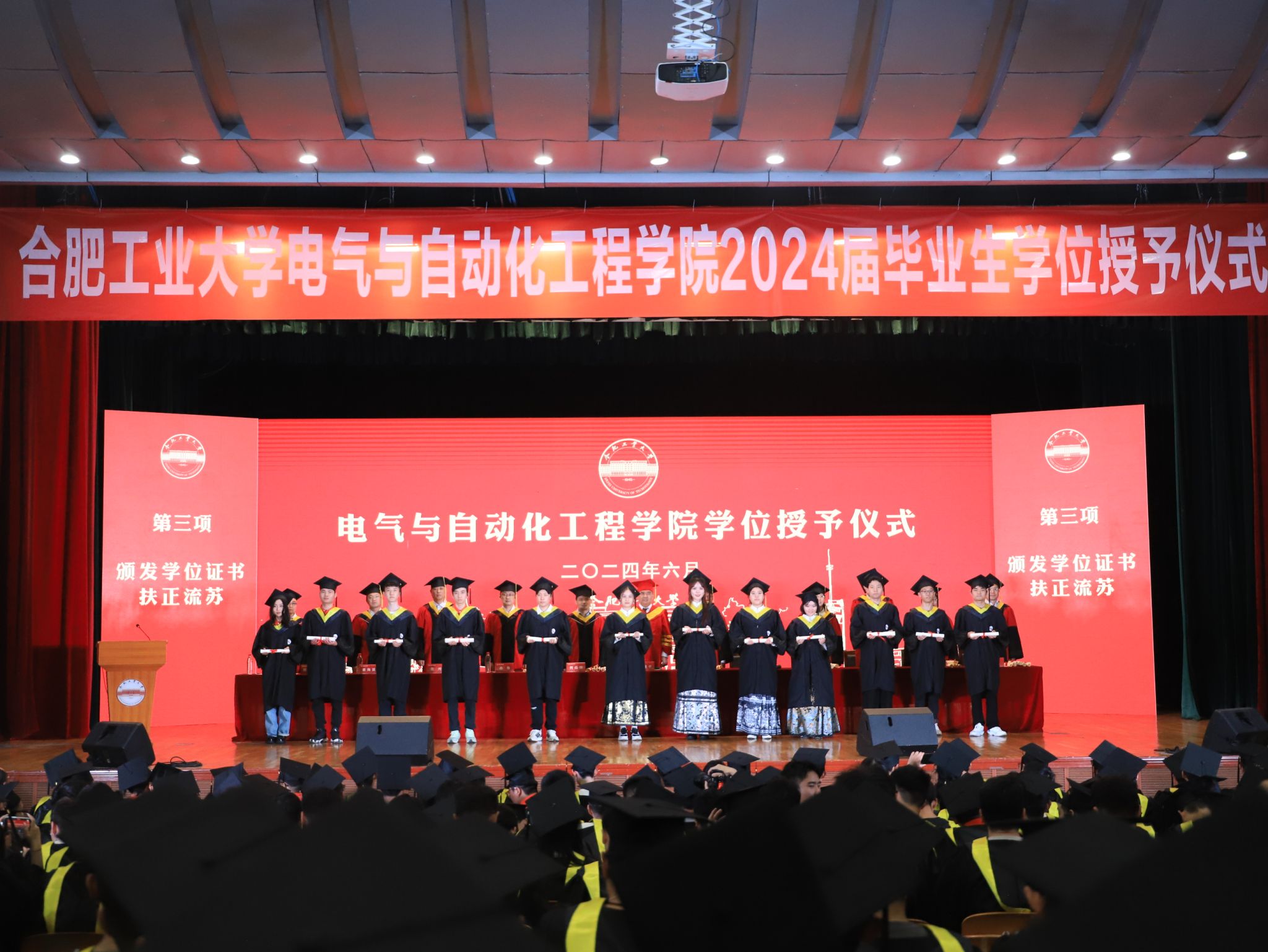 6月18日下午,必赢线路检测3003no12024届合肥校区毕业生学位授予仪式在屯溪路校区斛兵礼堂举行。校党委常委、副校长刘晓平出席仪式,学院相关负责人、学位评定委员会委员、教师代表、学生家长代表、校友代表以及2024届学士、硕士、博士学位获得者参加仪式。仪式由学院副院长黄海宏主持。