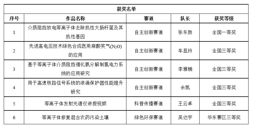 全国大学生等离子体科技创新竞赛秉持“学科交叉融合,创新驱动发展”的核心理念,紧密围绕国家和行业发展的迫切需求,聚焦等离子体科学及其应用的最新前沿与热点议题。学校一直以来高度重视学生创新创业能力的培养,为学生提供良好的实践平台。此次大赛取得优异成绩充分展现了我校双创教育取得的显著成效以及相关领域的影响力。