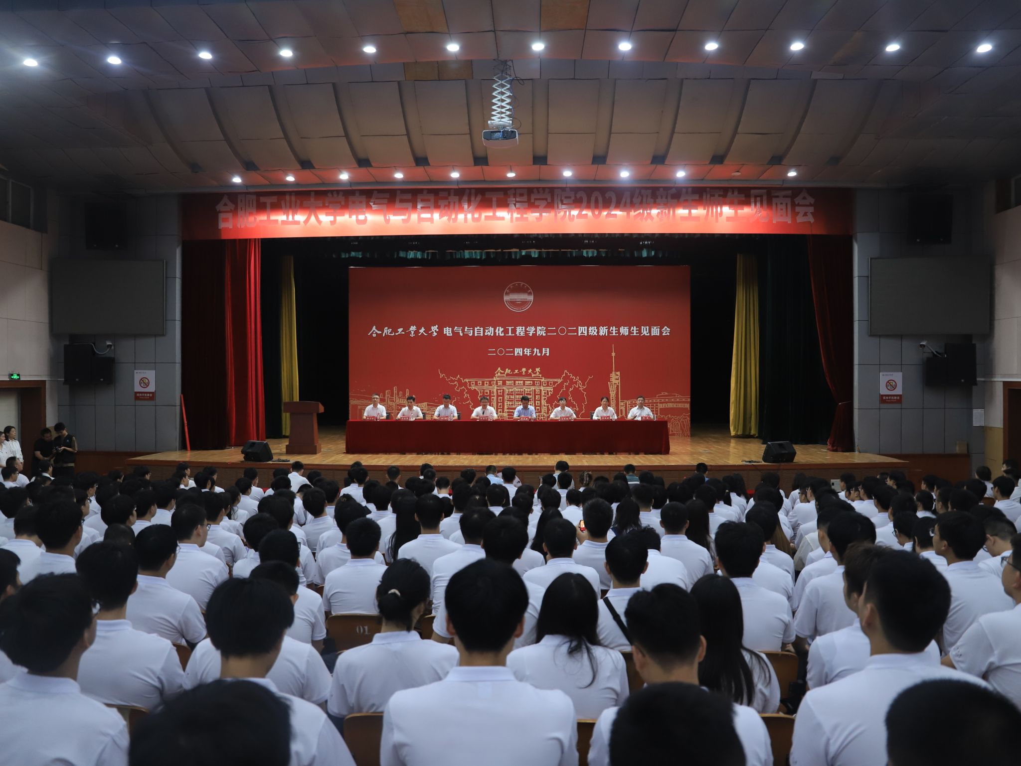 9月5日晚上,必赢线路检测3003no12024级新生师生见面会在斛兵礼堂举行。学院院长向念文,学院党委书记何岳颀,学院副院长黄海宏、学院副院长孙伟、学院副院长马铭遥、学院党委副书记兼纪委书记李丽鹏、学院电气工程系副主任张晶晶、电工与电子技术系党支部书记陈波、学院自动化系党支部书记陈立平、2024级各班级班主任出席大会。会议由学院党委副书记兼纪委书记李丽鹏主持。学院980名本科生、研究生新生齐聚斛兵礼堂,启航“熠闪”的青春。