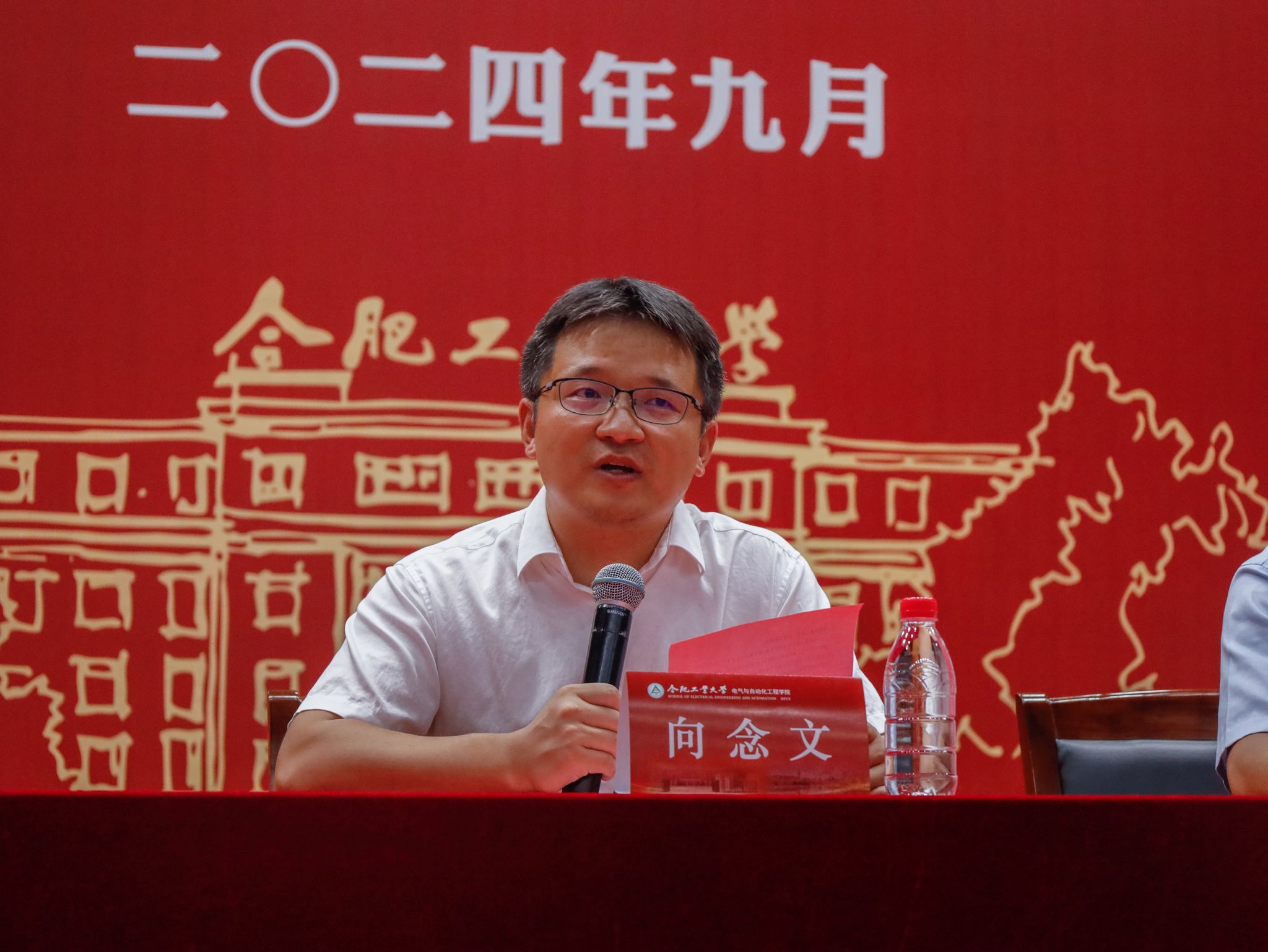 学院院长向念文教授代表全院师生向新同学表示热烈的欢迎和衷心的祝贺。他表示,学院经过70多年的发展,已经成为学校人才培养、科学研究、社会服务的主力军和重要基地之一。学院在学科发展和科学研究上紧跟国际发展前沿,高度重视学科交叉融合发展,获批共建3个国家级科研平台,电气工程和控制科学与工程两个一级学科均保持良好发展势头。他叮嘱,身为一名新时代电气人,一是要制定志存高远的长久目标,时刻以“眺望”的状态涵育日常生活,二是要确立深度思考的专业认知,积极以“笃思”的状态引导成长发展,三是要形成清晰可行的成长规划,坚持以“崇真”的状态打下坚实基础,四是要保持阳光向上的心体素质,主动以“提韧”的状态滋养身心健康,要在学习生活中以专业知识激发兴趣、引发共鸣、焕发生机、迸发动力,勇赴创新潮头,为社会进步贡献新兴的动力和澎湃的朝气。