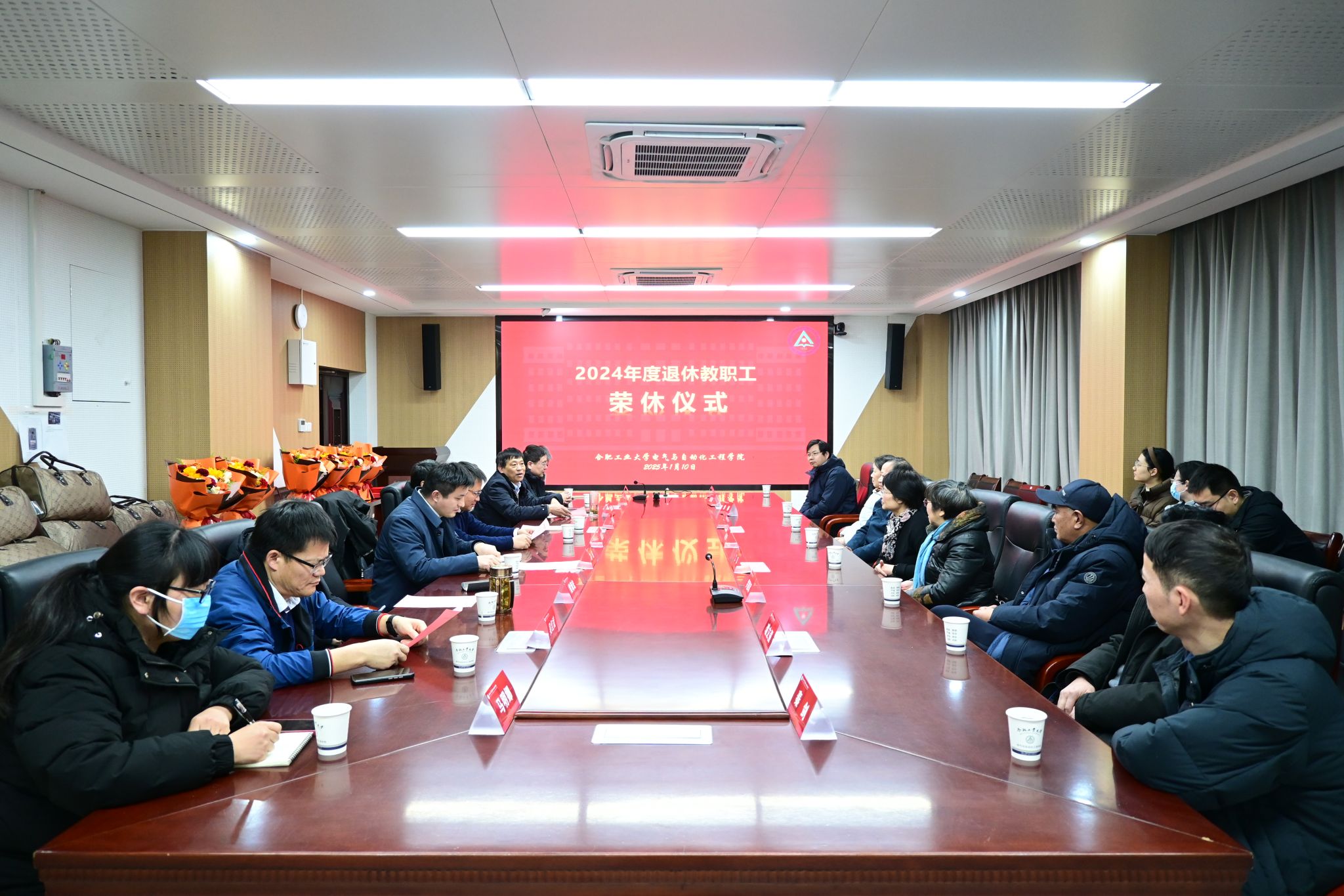 1月10日下午,必赢线路检测3003no1在逸夫楼1009会议室隆重举行了2024年度退休教师荣休仪式。学院领导班子、原党委书记何岳颀、各系中心负责人及青年教师代表出席了此次仪式,仪式由副处级组织员施大顺主持。