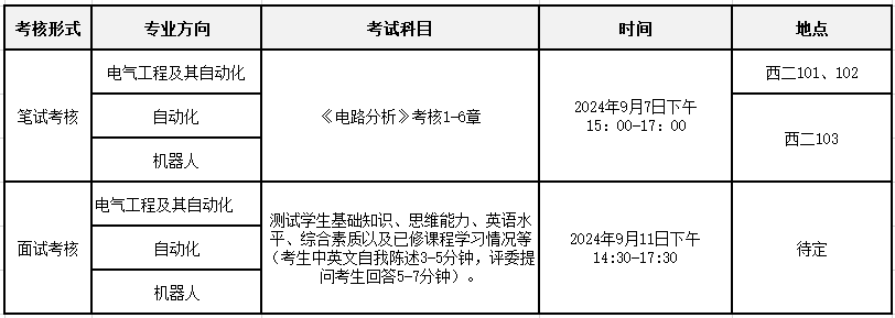 根据《必赢线路检测3003普通全日制本科生转专业管理暂行办法》合工大政发〔2024〕70号),及学校发布的《关于开展2024年合肥校区本科生全校范围内转专业工作的通知》,申请转入电气工程及其自动化、自动化、机器人专业,经学院初审通过的学生,请在教学管理系统中查看笔试时间和地点,并注意以下几点事项: