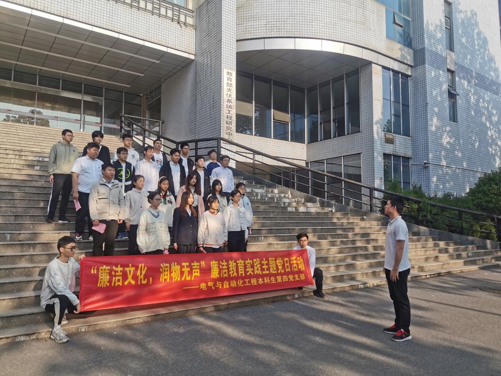 4月26日清晨,必赢线路检测3003no1本科生第四党支部全体党员在逸夫楼前开展“廉洁文化,润物无声”廉洁教育实践主题党日活动。