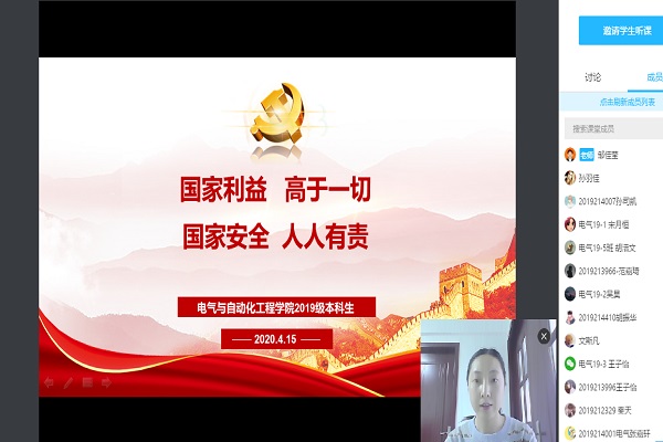 线上竞赛前,各班级纷纷召开主题班会,组织班级同学观看国家安全教育课《总体国家安全观视角下的疫情防控》,集体学习国家安全教育内容,营造学习国家安全知识的良好氛围。辅导员邹佳莹采用“线上”领学的方式,组织年级学生骨干深入学习《中华人民共和国国家安全法》《中华人民共和国反间谍法》等相关法律法规,和学生一起对“什么是国家安全”、“危害国家安全的行为有哪些”、“如何维护国家安全”、“谁来保卫国家安全”、“公民、组织的义务和权利有哪些”等知识进行梳理,深入了解“国家安全日”的由来及其意义、维护国家安全的任务与职责等,并带领学生共同观看了《“4·15”主题宣传短视频》《我是间谍》等全民国家安全教育短视频。