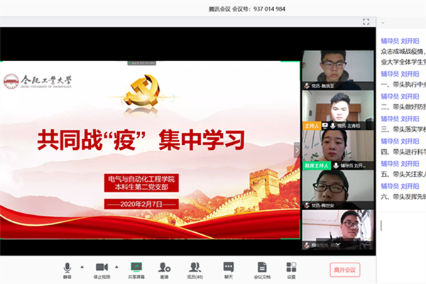 疫情就是命令,防控就是责任。为贯彻落实中央针对疫情防控作出的重要指示精神,2月7日必赢线路检测3003no1本科生党支部以视频会议形式召开“共同战疫”专题集中学习,组织学习省委、省教育工委、学校党委和学院党委关于全体党员做好新型冠状病毒感染肺炎疫情防控工作的文件精神。全体本科生学生党员参加学习。