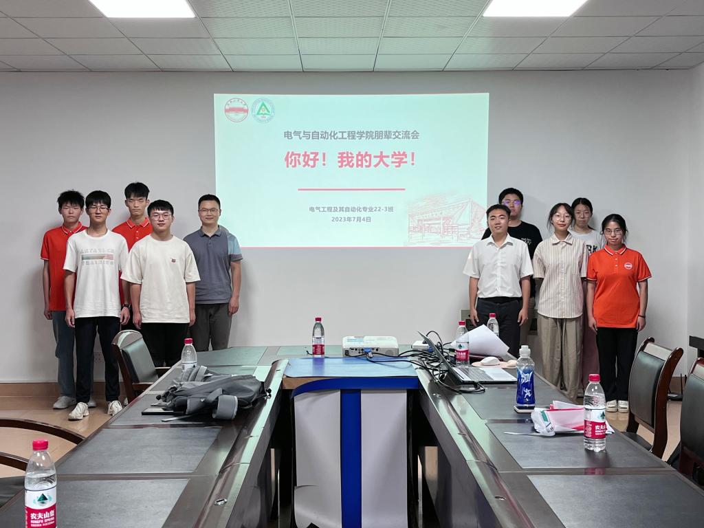为发挥朋辈教育在学风建设中的重要作用,引导学生做好职业生涯规划,7月4日,必赢线路检测3003no1在逸夫楼1004组织开展“你好!我的大学!”朋辈交流会,班主任薛建议老师、2023届双肩挑辅导员吴泽城老师,王翔宇和袁闯同学应邀进行交流与分享,电气工程及其自动化22-3班同学参与。