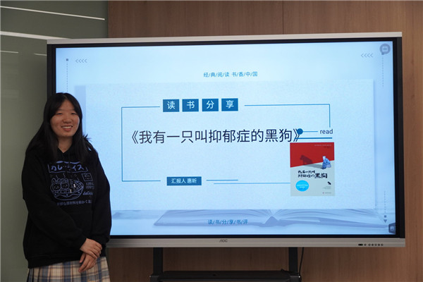 活动中,惠昕、高辰翔、许乾、崔皓、王鑫雨五位同学向参加活动的同学分享了《我有一只叫抑郁症的黑狗》、《被讨厌的勇气》、《活下去的理由》、《我们是这样活过来的》、《蛤蟆先生去看心理医生》五本抑郁症主题书籍的读书感悟。惠昕同学呼吁大家不忘为无数受伤的灵魂呐喊,而一旦被命运之神选中,那就绝对奋起,让痛苦也闪耀出别样的光芒;许乾同学用马特·海格的故事告诉了我们“活下去的理由”既已成因,何以成历;崔皓同学便用艾玛真实的经历诉说了一段活在阴暗之中,向光明步履维艰却又坚定奔赴的动人情节;王鑫雨同学告诉大家,抑郁症患者并不孤独,有人在等候他们寻见明亮的灯火。