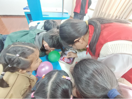 志愿者带领学生开展趣味实验