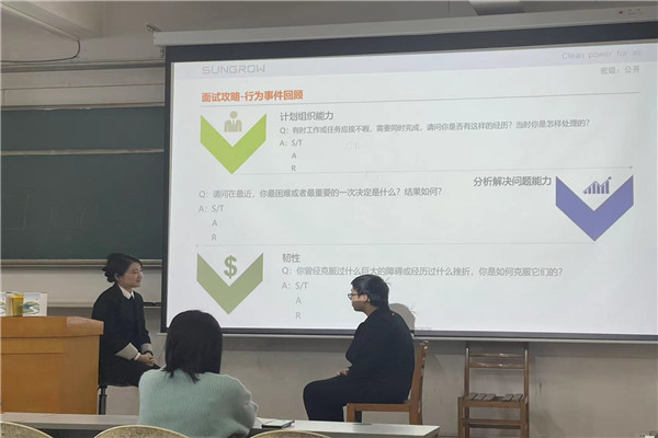 本次讲座邀请了必赢线路检测3003no1校企合作单位——阳光电源股份有限公司和双杰电气股份有限公司人力资源经理李晓燕女士和邵珠恒先生为同学们做简历制作技巧分享和求职面试经验分享。“如何作答一份清晰的职业规划”“如何撰写一份优秀简历”“如何在面试中脱颖而出”,两位老师由同学们非常关心的三个问题出发,由浅及深地展开了方法与技巧讲解。