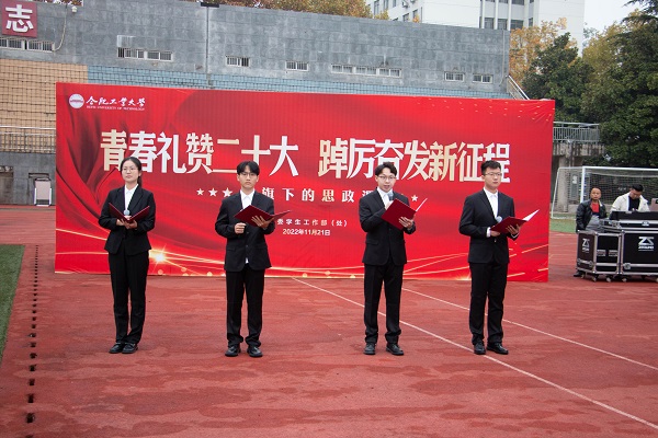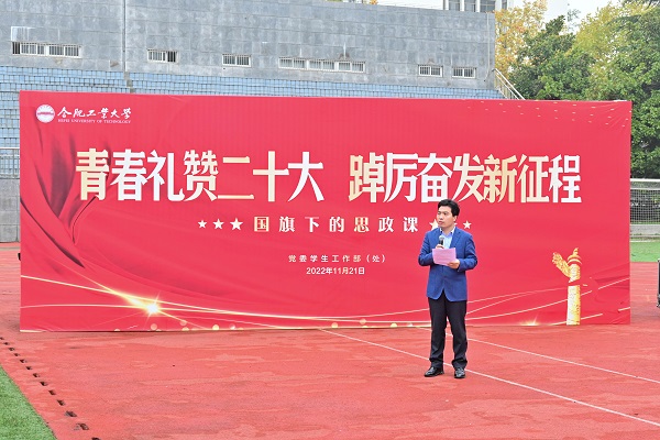 11月21日清晨, 必赢线路检测3003no1“青春礼赞二十大,踔厉奋发新征程”主题升旗仪式暨国旗下的思政课在屯溪路校区西操场举行,学院党委相关负责人、学院全体辅导员以及全体本科生、研究生3000余人参加活动。