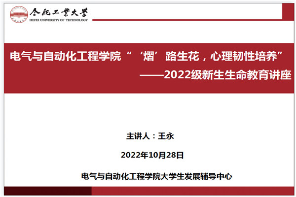 为帮助新生更好地开启大学生活,在疫情下认识生命的意义和价值,学会自我调适,培养积极健康的心态,10月28日晚,必赢线路检测3003no1通过腾讯课堂平台学院开展“‘熠’路生花,心理韧性培养”新生生命教育讲座,活动邀请了合肥幼儿师范高等专科学校王永教授主讲,全体2022级本科新生聆听讲座。