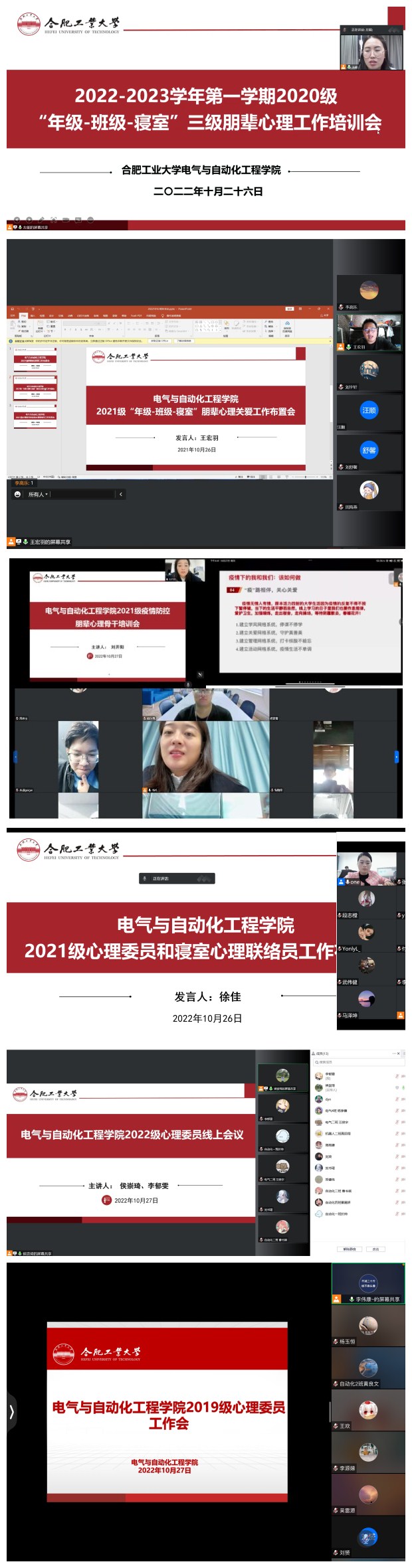 为进一步提升学生心理骨干开展心理健康教育宣传和朋辈助人工作的能力,10月26日-28日,必赢线路检测3003no1分年级围绕“‘熠’起护航,守护青春”主题开展线上心理骨干技能培训,由学院大学生辅导中心辅导员老师主讲,400余位心理骨干参加培训。
