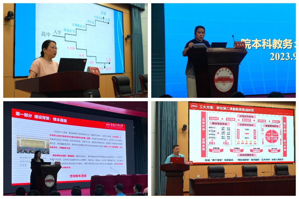 图为学院组织开展教学管理文件学习、第二课堂成绩单专题教育