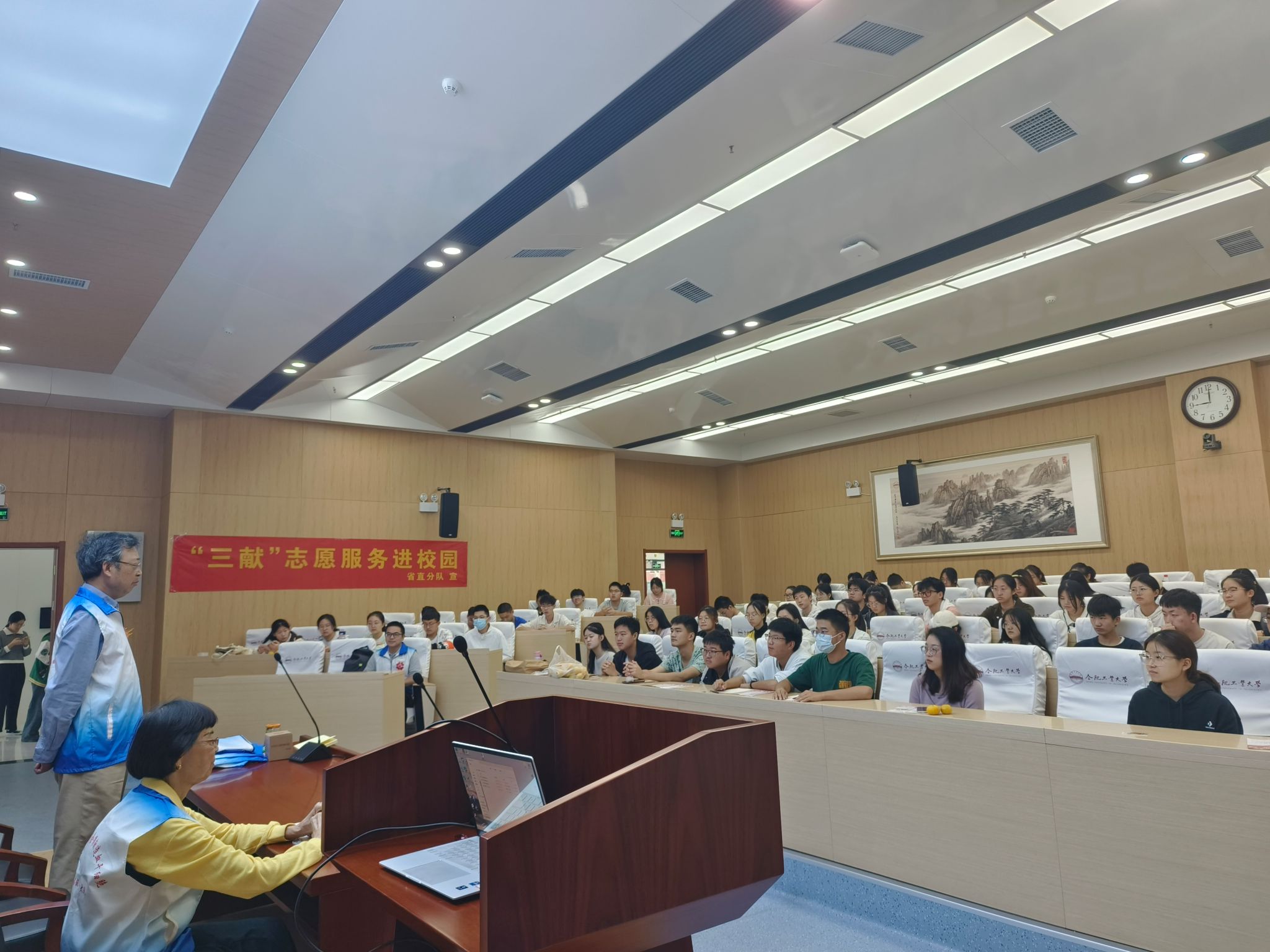 10月24日上午,必赢线路检测3003no1联合管理学院在管理楼第二报告厅开展献血站志愿服务培训讲座,邀请合肥血站省直分队队长文世乐、副队长姜从山、黄国荣开展“三献知识进校园”志愿培训讲座,电气学院、管理学院100余名志愿者代表参加培训讲座。