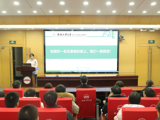 首先,志愿服务中心负责人赵静怡对本年度志愿服务工作进行了总结汇报,2023年阳光志愿服务中心以“挺膺担当,奋斗实干”为主题,打造“‘巷’约青春,‘熠’启守望”社区治理与邻里守望志愿服务品牌,开展“熠”暖桑榆、“熠”起治理、“熠”伴成长、青年“熠”语、“熠”暖民心、“熠”话双碳系列活动,在前期工作基础上勇于创新,不断扩大志愿服务工作的宽度、深度、高度,打造电气学院志愿服务特色品牌。学院2023年与瑶海区和平路街道、铜陵路街道、包河区芜湖路街道共建志愿服务基地20余个,全年开展志愿服务活动360余次,志愿服务总时长37925.1小时,参与人数5553人,志愿服务工作取得了一定成效。随后,指导老师对阳光志愿服务中心过去一年的工作给予了充分肯定,对全体成员的辛勤付出表示衷心感谢,他结合“奉献、友爱、互助、进步”的志愿服务精神和雷锋同志的先进事迹激励全体同学增强躬身实践、岗位建功的实干担当,涵养乐于助人、公而忘私的奉献精神,磨练艰苦奋斗、敢于斗争的坚韧气质。学会正确看待和处理集体与个人、大我和小我、利他与利己的关系,在服务奉献中实现自我价值,坚守志愿服务初心,坚定担当作为决心,保持服务奉献热心,把志愿服务当作一份事业、一份责任、一种热爱,在服务奉献中提高综合能力,践行青年担当,彰显个人价值,促进社会发展,创造更好成绩。最后,各部门负责人讨论了2023年志愿服务工作中出现的问题和改进措施,汇报了2024年志愿服务工作计划,参会同学就志愿服务工作高质量开展、打造特色品牌等内容进行交流讨论。