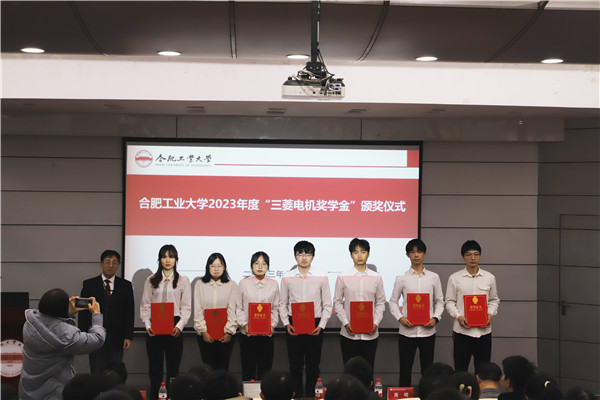 三菱电机捷敏功率半导体(合肥)有限公司技术服务总监商明在致辞中向与会师生介绍了“三菱电机”设置的由来,向获得奖助学金的同学表示祝贺,并勉励在场同学,人才是推动社会和企业向前发展的力量所在,希望同学们可以不忘初心,不骛虚声,敢于创新,大胆实践,三菱电机衷心地希望和相信大家在未来的职业生涯中为社会做出更大的贡献。
