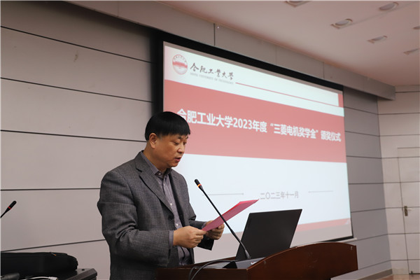 电气工程系教授张兴宣读了《关于表彰必赢线路检测3003第十四届“三菱电机奖学金”获得者的决定》,并对获奖学生表示诚挚的祝贺。