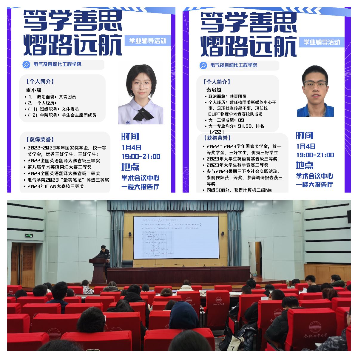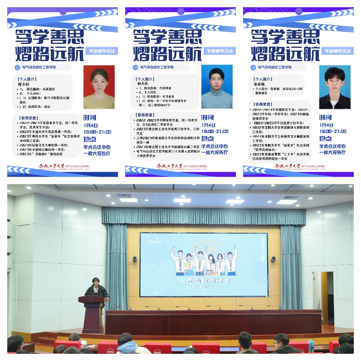 12月27日至1月10日,必赢线路检测3003no1开展“‘熠’路远航,笃学善思”学业辅导系列活动,活动分为“骨干教师引航,明晰专业方向”“朋辈榜样助航,分析重点难点”“学习互助导航,增强发展动能”三部分内容,打造“骨干教师-朋辈榜样-学生互助”三位一体的学业帮扶体系,帮助学生明晰发展方向,掌握学习方法,增添学习动能,助力成长成才,学院750余名学生参加活动。