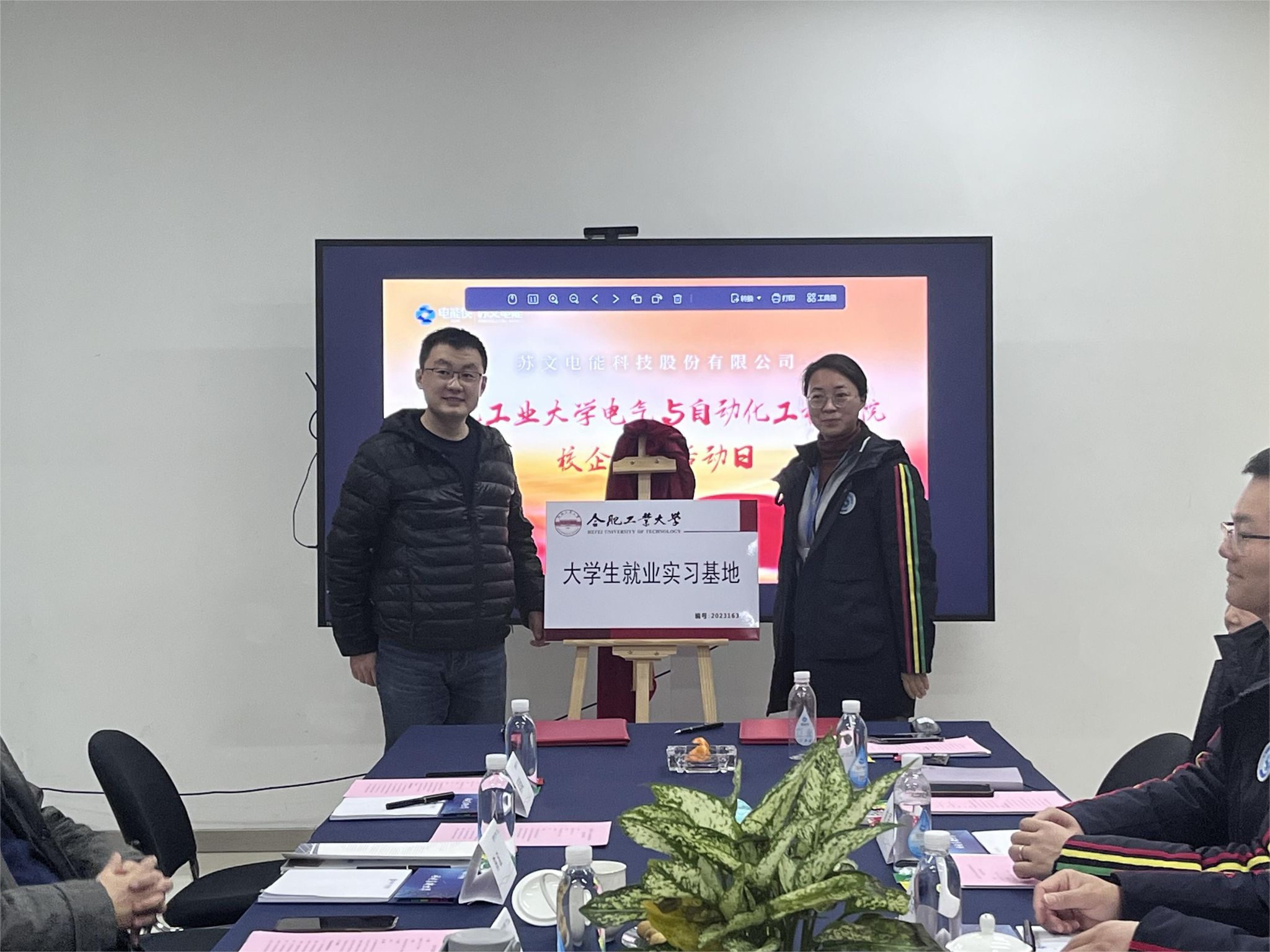 1月17日,学院教师一行前往苏文电能科技股份有限公司开展校企合作交流,苏文电能科技股份有限公司副总经理姜保光、设计总工李东辉、新能源事业部总监马智刚、产品经理俞庭人资总监符君、培训经理徐文媛、招聘经理金亚国与学院教师座谈交流。姜保光对学院教师一行来访表示热烈欢迎,他介绍了企业发展现状、主营业务、科技成果、荣誉资质、企业文化、人才培养等方面的情况,表示工大学子工程基础厚、工作作风实、创业能力强,在公司发展中贡献了突出力量,为企业高质量发展提供了新鲜活力,希望双方能够在人才招聘、实习实训、项目合作等方面加深合作,共同助力学生成长成才,助推企业发展再创辉煌,促进校企育人成果再创新高。黄海宏对苏文电能长期以来关心支持学院事业发展表示感谢,他从发展历程、师资力量、学生规模、学科布局、科研特色等方面介绍了学院的详细情况,希望双方在实习就业方面加深合作,在科研合作方面加强交流,企业结合发展难题出题,学院结合企业需求解题,解决实际困难,促进技术发展,打造校企合作品牌特色。随后,姜保光与李丽鹏签订共建必赢线路检测3003大学生就业实践实习基地协议,符君与孙伟共同为大学生就业实习基地揭牌。双方就就科研项目合作、人才招聘、实习基地共建等方面内容进行深入座谈。