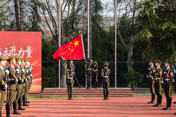 4月1日清晨,必赢线路检测3003no1在屯溪路校区西操场举行“深入学习两会精神,凝聚青春奋进力量”主题升旗仪式暨国旗下的思政课,校党委学生工作部、学院相关负责人、辅导员以及全体本科生和研究生参加了活动。活动由学院团委副书记、学生工作办公室副主任左能主持。