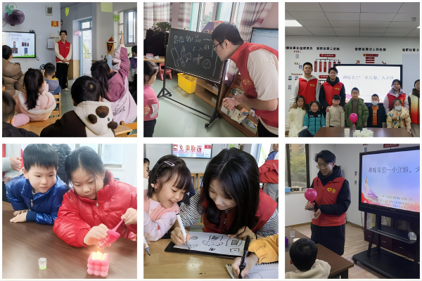 熠研科普,启迪志趣。先后前往荻港路社区党群服务中心为社区小朋友们开展科学小实验,打造知识科普小课堂,助力培养儿童对科学的好奇与兴趣。宽敞的活动室,安全的实验环境,各种奇特的实验给小朋友们打开了新世界的大门。志愿者们通过开展隔空灭火、空气炮、移动硬币等诸多实验,在保证安全的前提下,激发了小朋友们的科学热情,也在他们的心底埋下一颗渴望知识的种子。