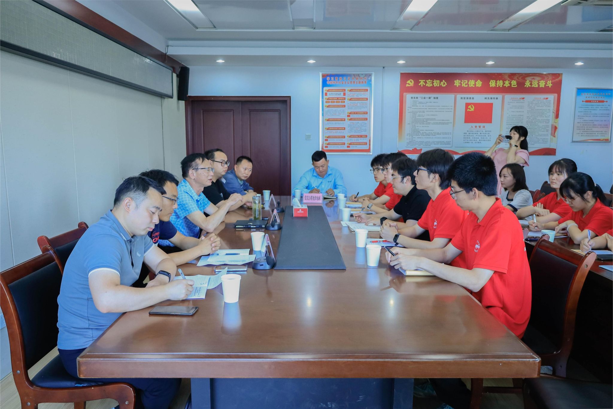 团队于金寨县发展和改革委员会开展座谈,金寨县发展和改革委员会(粮食物资局)党组成员、能源局局长杨竣生,光伏扶贫电站、申鑫储能电站以及信义光能白塔光伏电站相关负责人参加座谈。杨竣生对团队一行的到来表示欢迎,并围绕金寨县能源发展历史沿点、地域特点、振兴亮点展开,结合光伏助力脱贫、光伏产业交叉、光伏活源持续发展等要素,重点讲述了金寨县如何率先“定下调子”精妙施策,先人一步锚准新能源发展方向,随后“找到法子”精巧破题,深刻剖析挖掘新能源发展优势,最终“蹚出路子”精准发力,久久为功打造新能源发展闭环,形成一条覆盖层面广、配套企业全、创新能力足的新能源产业链,开创出“政府+企业+个体”高效扶贫模式,实现脱贫攻坚与可持续发展双向双赢。同时,金寨县结合油茶种植与光伏发电,打造农业与新能源双线并进的产业格局,积极响应国家绿色发展号召,深度贯彻习近平总书记“既要绿水青山,也要金山银山”的发展理念,加快发展绿色生产力,全面推进以经济社会发展绿色转型,让新能源为乡村振兴带来新机遇、注入新活力,高效赋能农村地区经济建设工作。杨竣生勉励与会成员,作为新一代电气人,要以创新之思为引领、以实践之力为基准、以民生之问为导向,保持“求知若渴”的学习热忱,培养“力行不辍”的学习习惯,树立“为国为民”的学习目标,将本领锻炼落在实处,为社会发展贡献强健有力的青春力量。