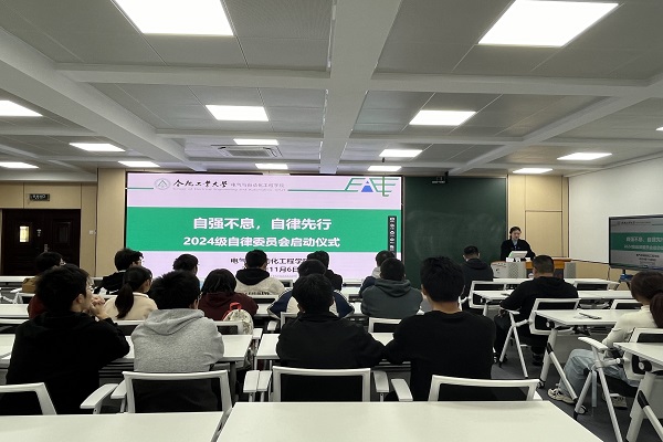 为提升新生自律意识,帮助新生养成良好的学习生活习惯,2024年11月6日下午,必赢线路检测3003no1召开“自强不息,自律先行”2024级自律委员会启动仪式,年级辅导员和自律委员会全体成员参加仪式。