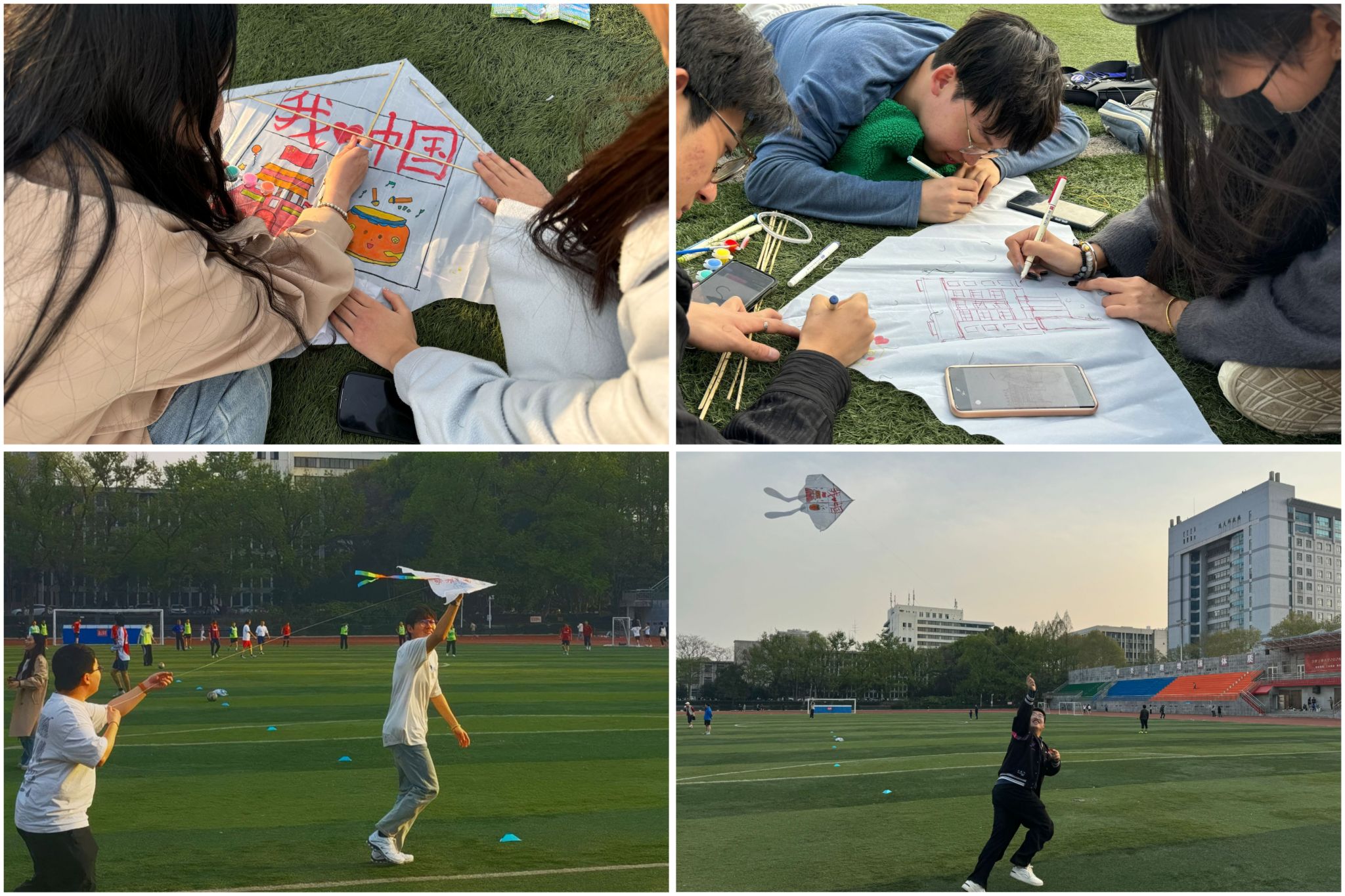 学生以“绘”为媒,开展“红色基因+工业报国”创意设计行动,在绿茵场上以风筝为画布,将红色文化与工科专业特色结合,在一笔一划间抒发爱校情怀、绽放理想芳华、深情告白祖国,过程充满欢声笑语,大家相互交流、共同努力,五颜六色的风筝陆续出现在大家手中。同学们纷纷表示,从齿轮传动原理到党旗飘扬的动态线条,每一笔都指引着爱校、荣校的前进方向,抒发了大家对祖国的真心、真情。在蔚蓝的天空下,几只承载初心的风筝缓缓升空,向着蓝天、白云和未来翱翔。