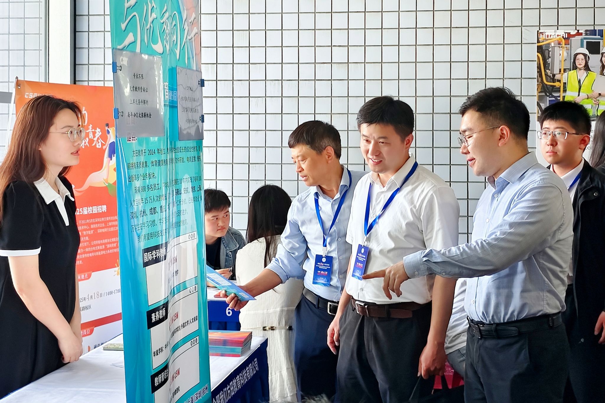 双向选聘环节中,学院党政领导与企业负责人亲切交谈,介绍学院人才培养、科学研究、社会服务等方面工作,围绕产学研校企合作与就业育人基地开拓情况展开交流,并对用人单位的热忱纳才表示感谢;希望应届毕业生时刻关注就业市场,清晰认识就业形势,牢牢把握春季招聘机会,强调了职业价值观对于个人成长成才的关键作用,并希望斛兵学子以八十载工业报国使命为指引,将个人职业生涯融入祖国事业发展大局。
