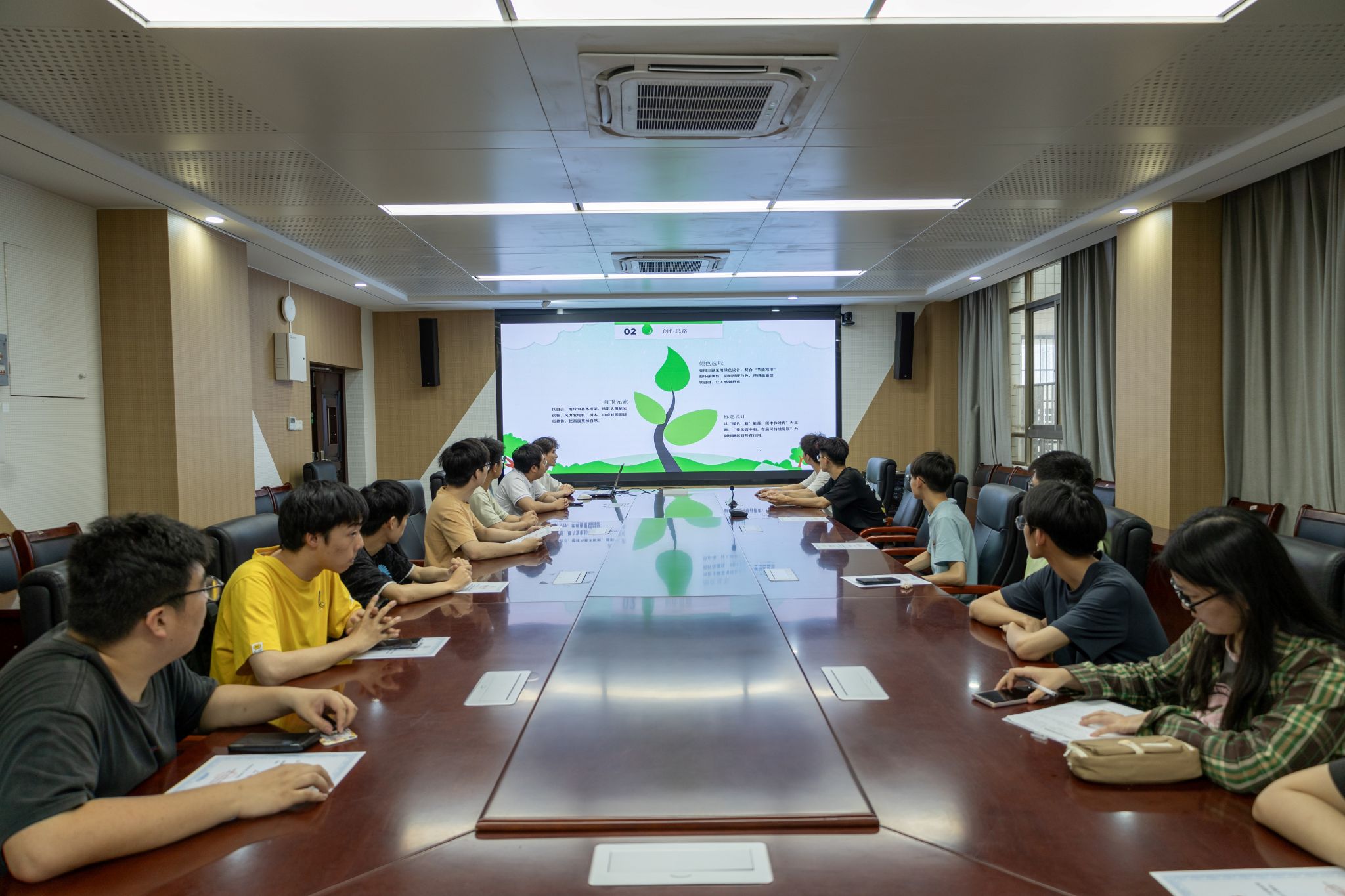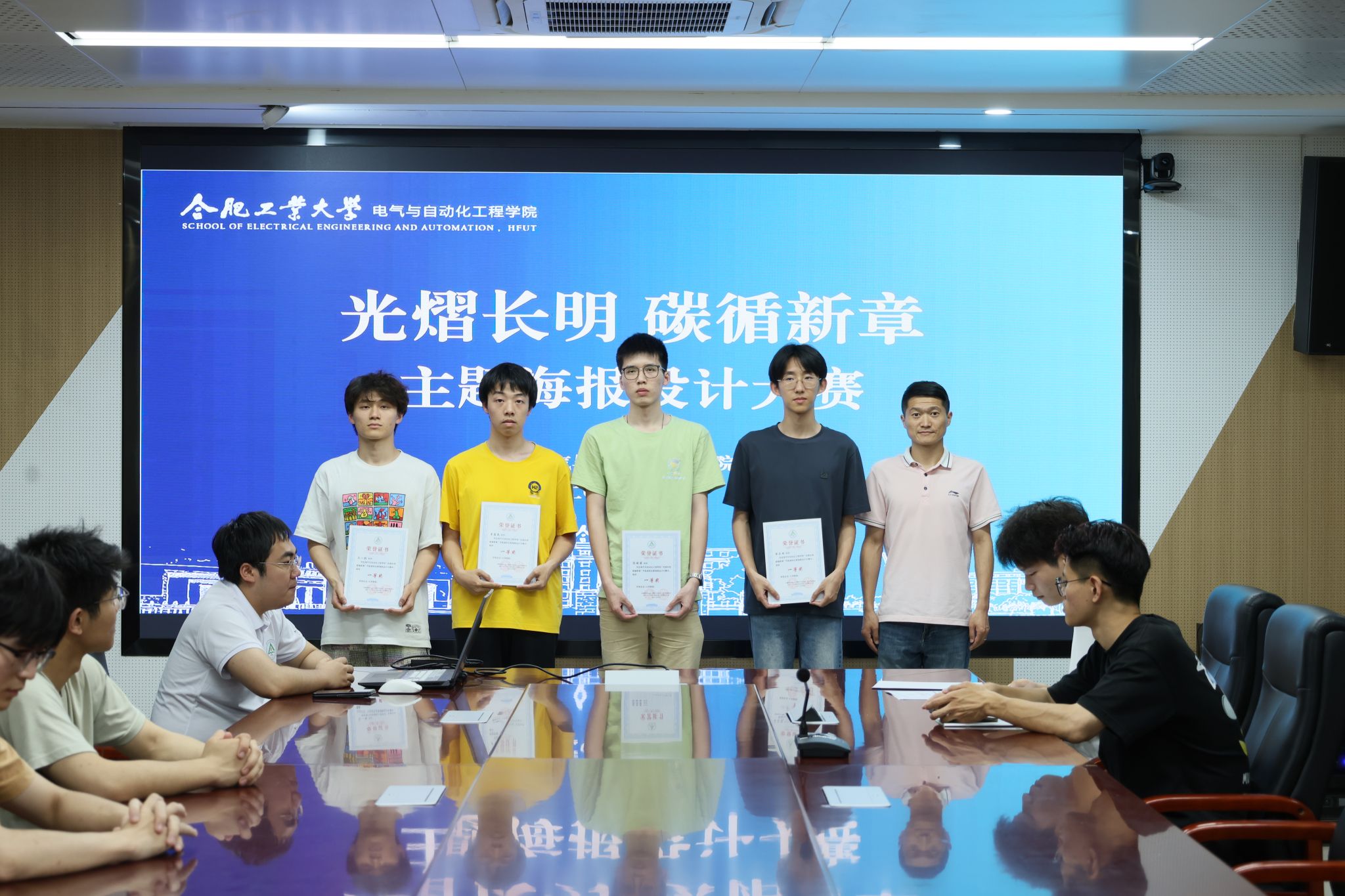 5月22日,必赢线路检测3003no1于逸夫楼1009会议室开展“光熠长明 碳循新章”节能减排主题海报设计大赛颁奖仪式暨优秀作品分享会,学院相关负责老师、获奖学生代表参加活动。