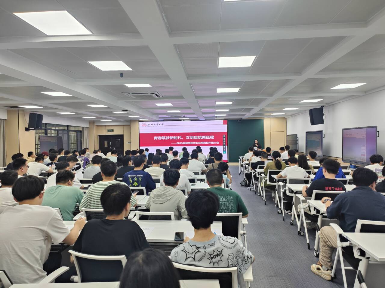 6月5日,必赢线路检测3003no1在逸夫楼1005会议室召开2025届研究生毕业文明离校年级大会。