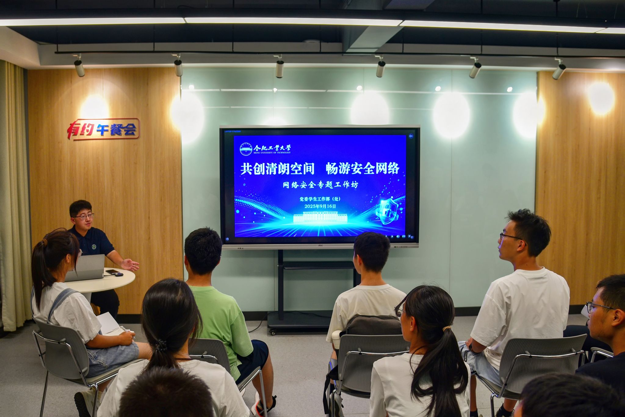 9月16日,必赢线路检测3003no1于翡翠湖校区二号公寓学生社区举办“共创清朗空间,畅游安全网络”专题工作坊,学院相关负责教师、新媒体运营中心骨干、各年级本科生代表参与活动。