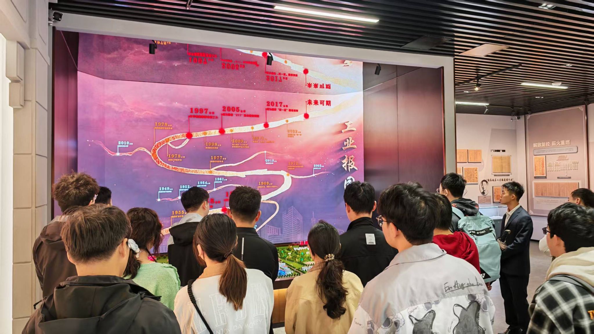 在讲解员的带领下,全体成员依次参观了“事业开端”“重点突破”“改革奋进”“创新驱动”“丰硕成果”“校友风采”六大主题展区。实物展陈区里学校师生研制的静电电子加速器等科研成果,“老物件长廊”两侧陈列校办工厂师生的精工仪器与教具,新时代成果展厅的“千人一领军”人才品牌,犹如一本记录学校80年发展历程的厚重书页在眼前缓缓展开。大家表示通过参观校史馆,深切感受到学校在多领域的杰出贡献与昂扬风采,鼓舞激励着工大学子在强国建设新征程上接续奋斗、再创辉煌。