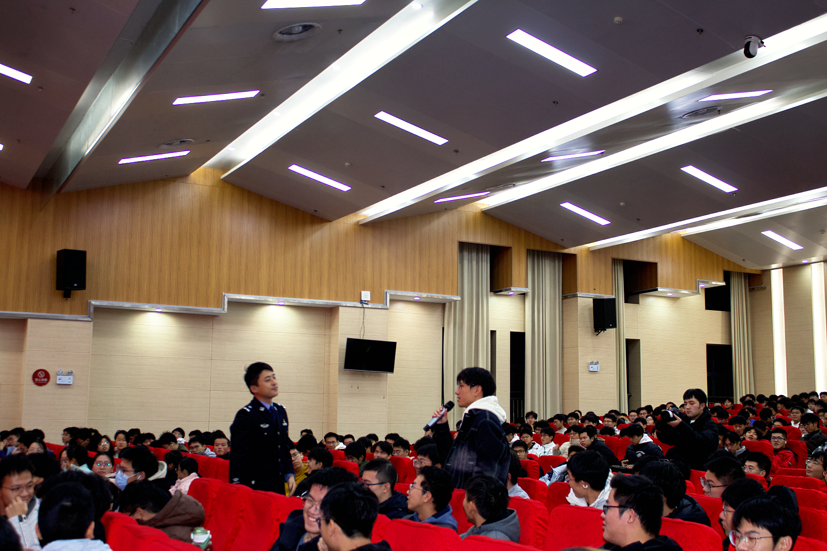授课过程中,杨础多次与现场同学交流互动,还以实际案件为例展开细致讨论,进一步细化防范技巧,让反诈知识入耳入脑入心。