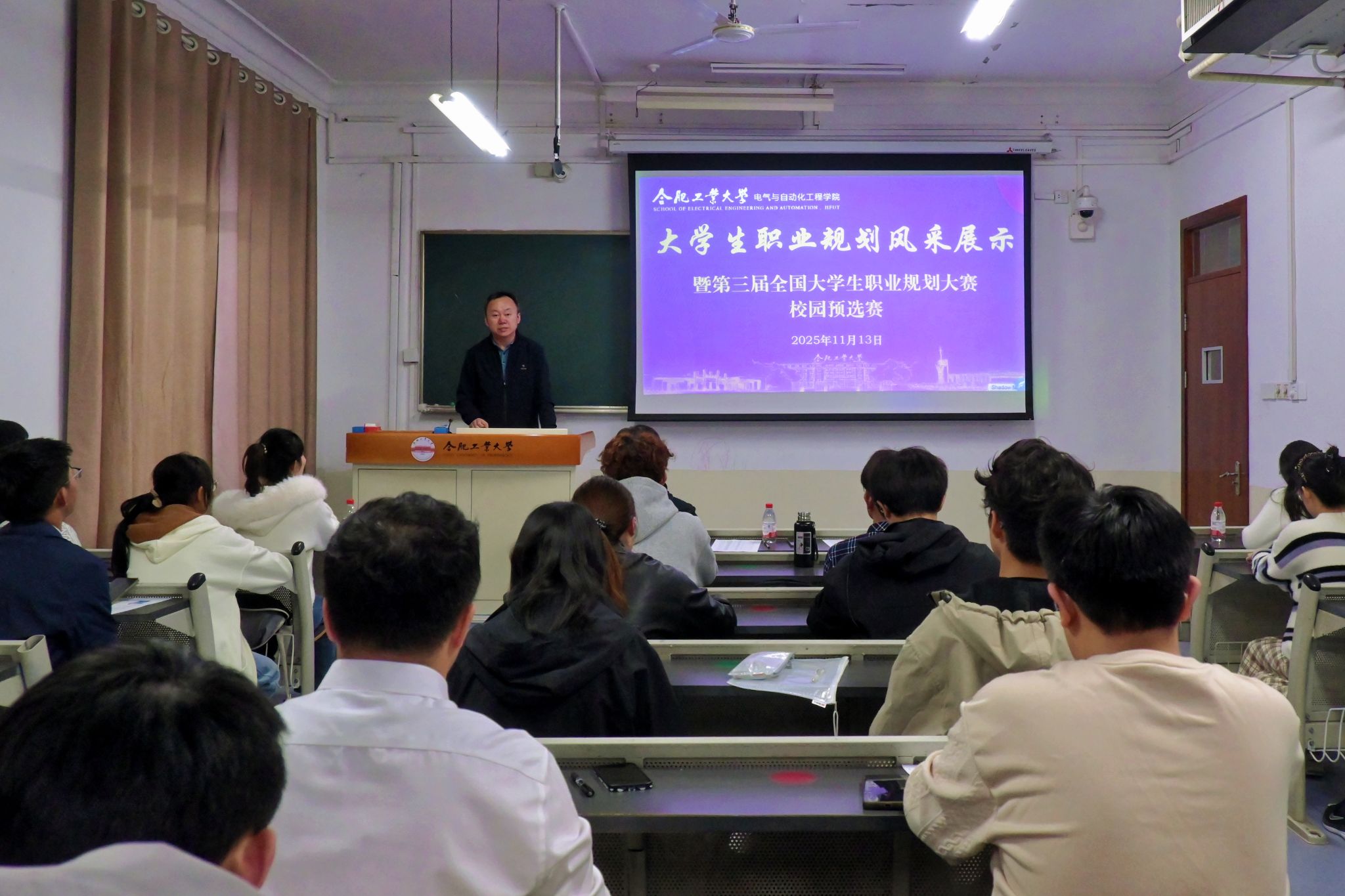 11月13日晚,必赢线路检测3003no1于主教学楼324教室举行2025年大学生职业规划大赛暨风采展示,学院相关负责人、各年级本研学生代表参与活动。