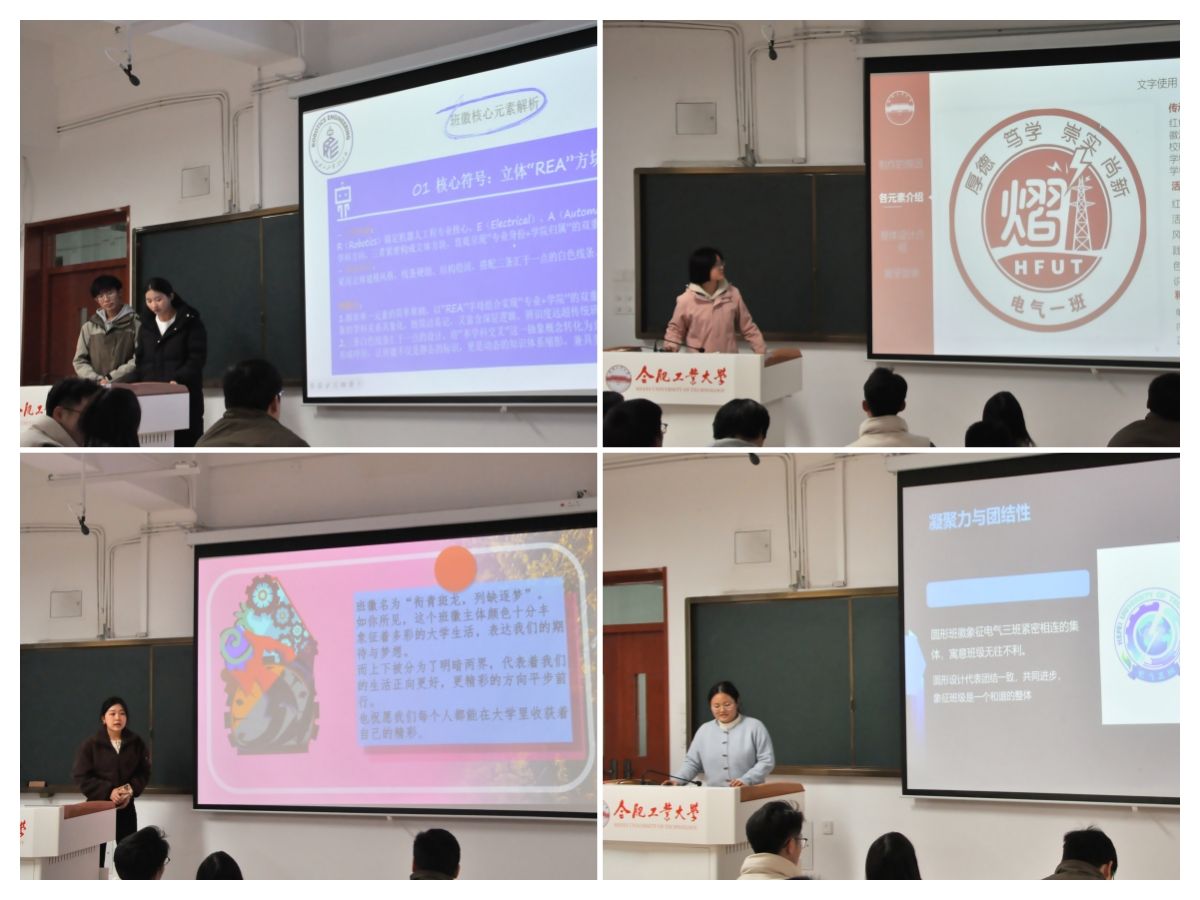 前期经线上投票角逐,12位班级的代表齐聚现场,展开班徽设计线下展示。答辩环节中,各班创作者与发言人结合设计手稿及班级故事,生动呈现班徽独特魅力。电气一班融入高压电塔与闪电元素,紧扣专业特色与班级风采;电气四班以齿轮象征协作,搭配“E”形电气标识,凸显凝聚力与专业属性;机器人1班通过人手与机械臂的互动设计,精准契合“人机协作”专业内核。评委围绕创作理念、元素象征意义等细节提问,创作者逐一详尽作答,充分展现了青春创意与思考深度。