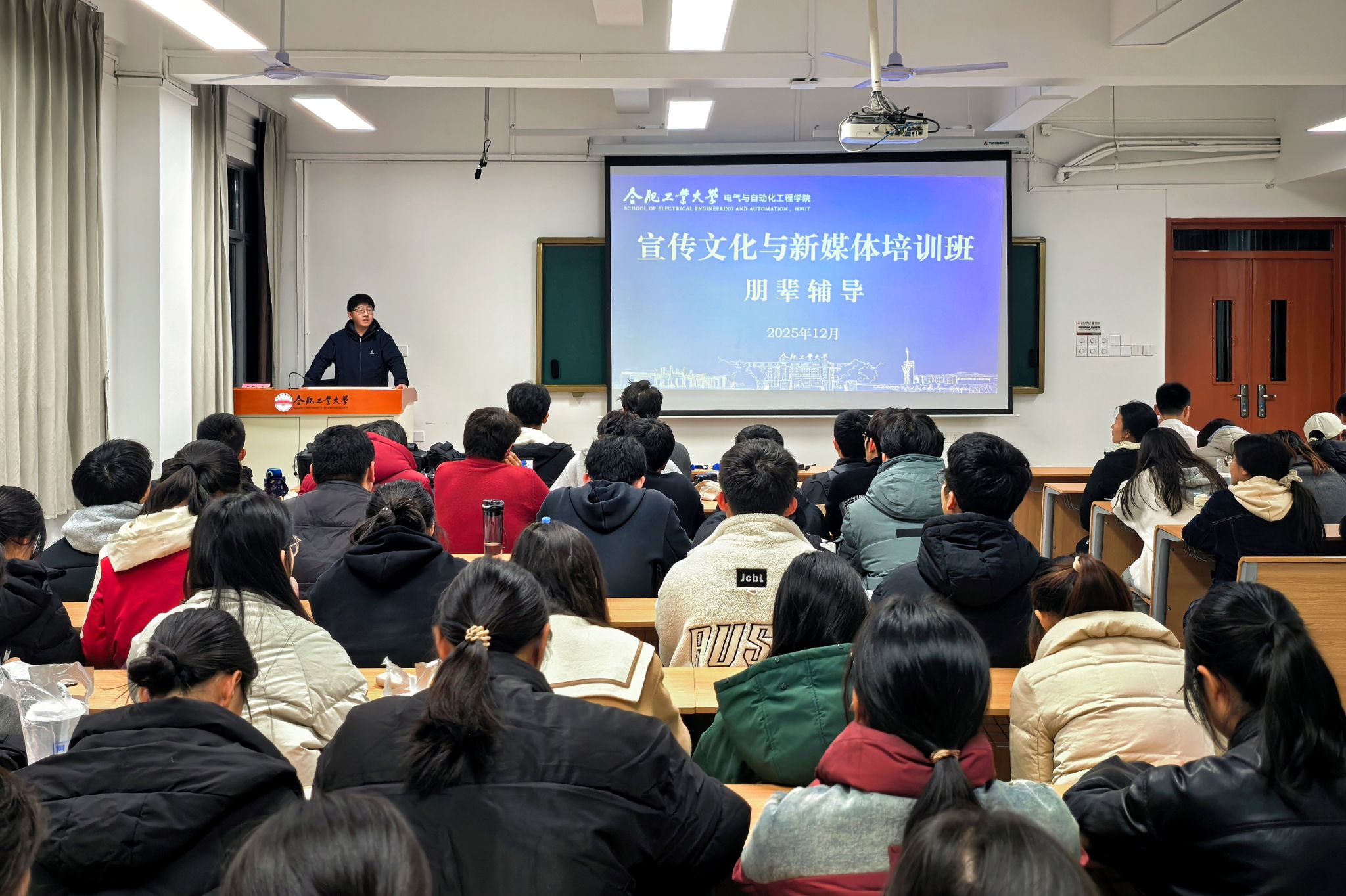 12月19日,必赢线路检测3003no1于翡翠湖校区八教311教室开展宣传文化与新媒体培训班朋辈辅导环节,学院相关负责教师、校院两级新媒体骨干代表、全体学员参加。