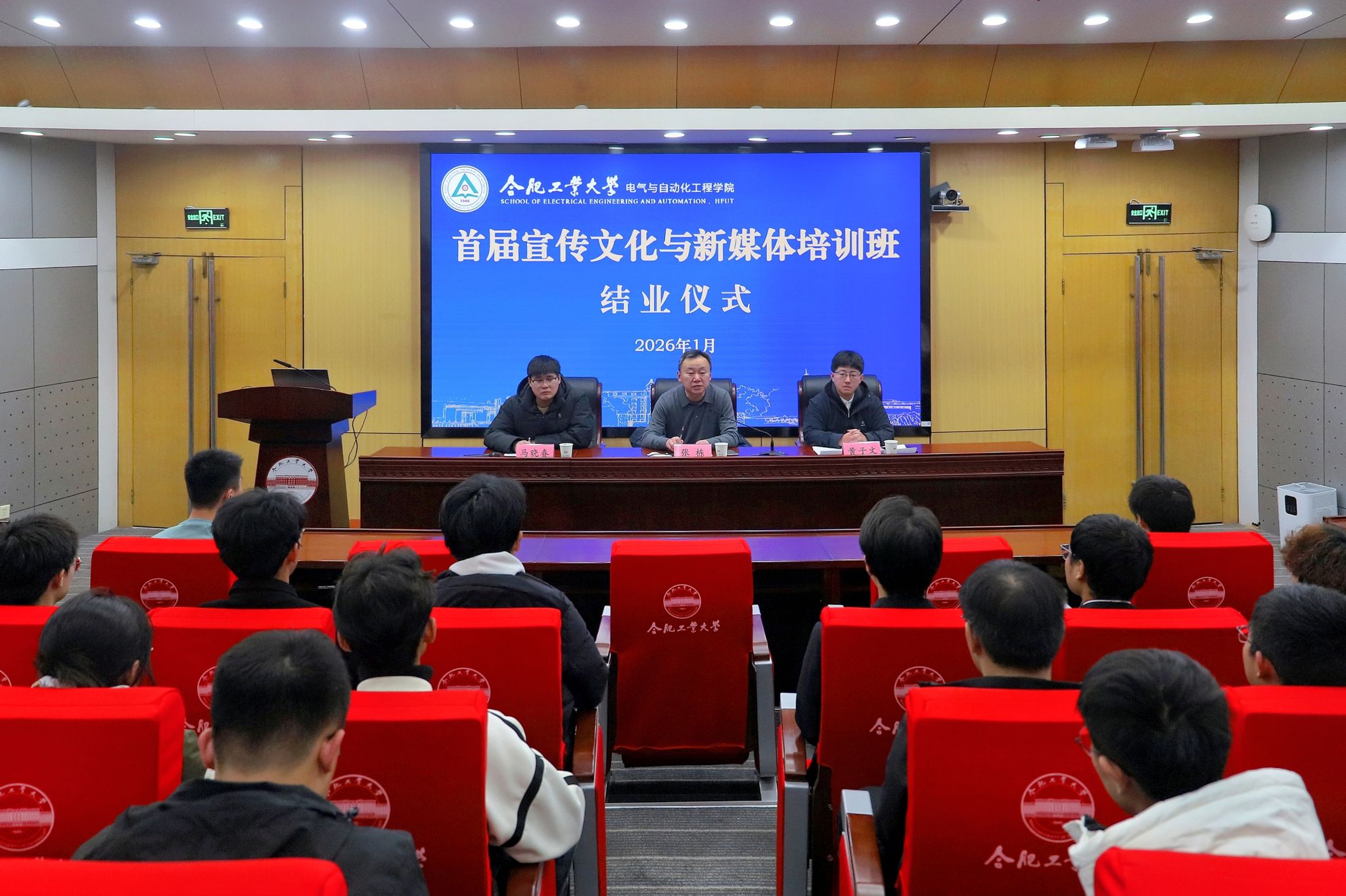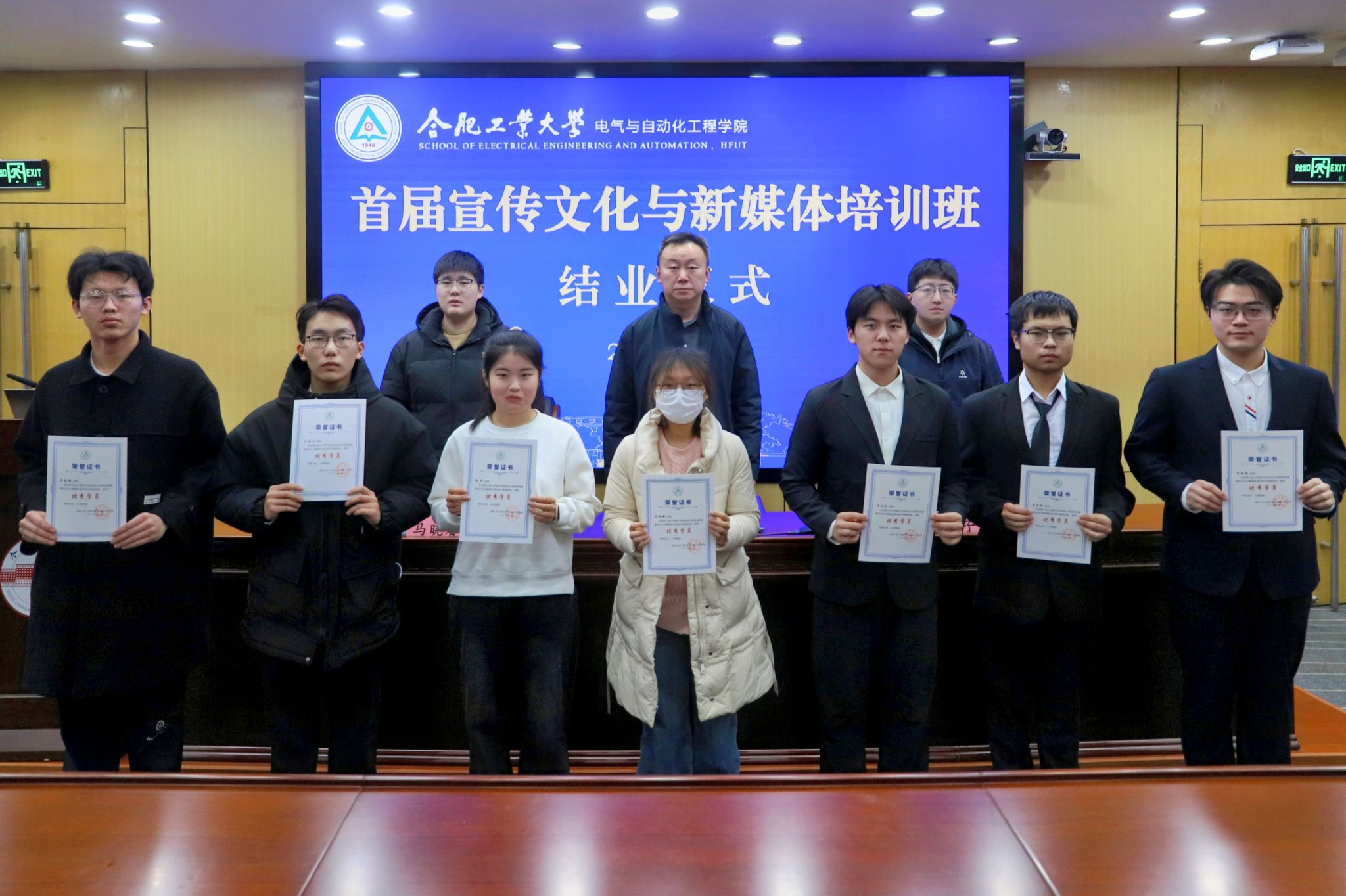 1月14日晚,必赢线路检测3003no1于学术会议中心二楼报告厅举行首届宣传文化与新媒体培训班结业仪式,学院相关负责教师、培训班全体学员参加。