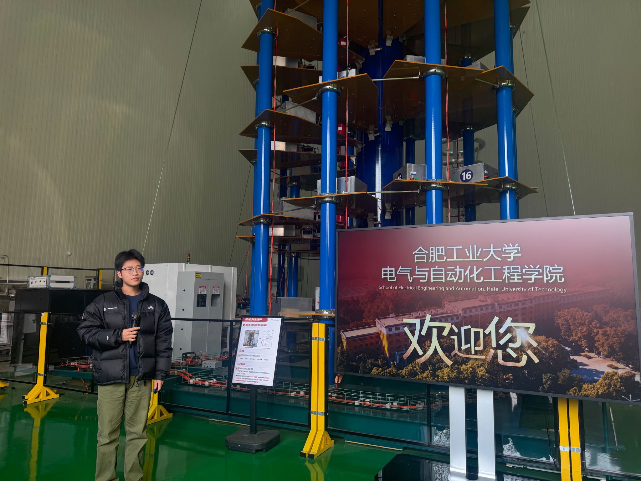 在高电压与绝缘技术实验室,讲解员结合展板与实物模型,系统介绍了航空器、轨道交通在雷电环境下的防护原理,重点展示了实验室针对低空全域不同微气象灾害的模拟试验平台与强电磁效应模拟实验系统,详细介绍了国内首个集“雷电主动调控-雷电监测预警-雷电防护”于一体的综合大型雷电科学研究平台。班主任赵毅老师带领同学们围绕设备原理、技术应用、学科前景等问题开展热烈讨论,并解答同学们的困惑,帮助大家理清专业认知、明晰学习方向,激发了同学们深耕专业学习、探索科技前沿、助力国家重大战略的热情。