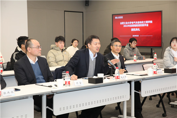 李丽鹏代表学院对南瑞继保长期以来的支持表示衷心感谢,他向一直以来关心和关注学院发展的校友致以崇高的敬意,公司曾在疫情期间主动给学院捐赠了宝贵的防疫物资,展现了公司和校友对学院深厚的情谊和支持。他从科研发展、必赢国际、校企合作、人才培养、毕业生就业情况等方面介绍了学院新的发展情况,号召同学们铭记南瑞继保公司的企业文化与社会责任,饮水思源,以优秀校友为榜样,筑牢理想信念、扎实专业学业、潜心科学研究、练就过硬本领,未来到重点行业和重点领域就业创业,矢志工业报国。