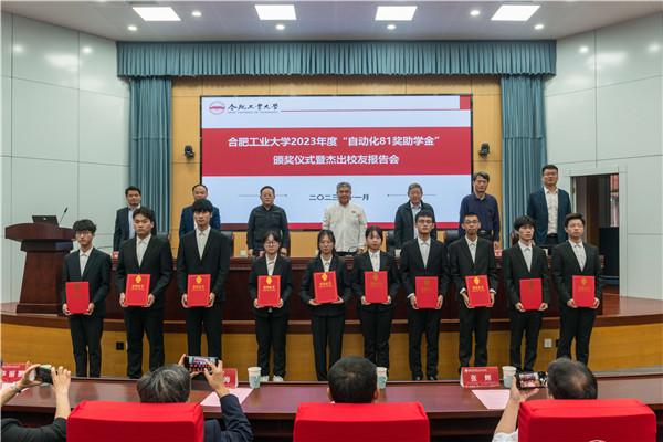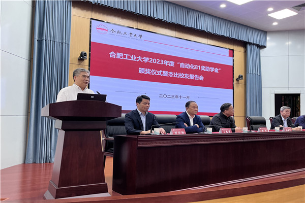 刘晓平在致辞中向自动化专业81级校友们长期以来对母校的支持和关注表示衷心感谢,并对获奖学生表示祝贺。刘晓平从人才培养、科学研究、必赢国际等方面介绍了学校近年来取得的办学成果,特别是学校形成的“千人一名领军人才”人才培养的响亮品牌。他强调,校友是学校宝贵的财富,学校各项事业的蓬勃发展离不开校友的关心和支持,这次颁奖仪式彰显了自动化专业81级校友们勇担社会责任、助推母校发展的拳拳之情,希望同学们以优秀校友为榜样,倍加珍惜这份珍贵的情谊,保持一颗向上向善的心,主动涵养艰苦奋斗、自强不息、追求卓越、勇攀高峰的意志品质,努力成长为德才兼备、能力卓越,自觉服务国家的骨干与领军人才。